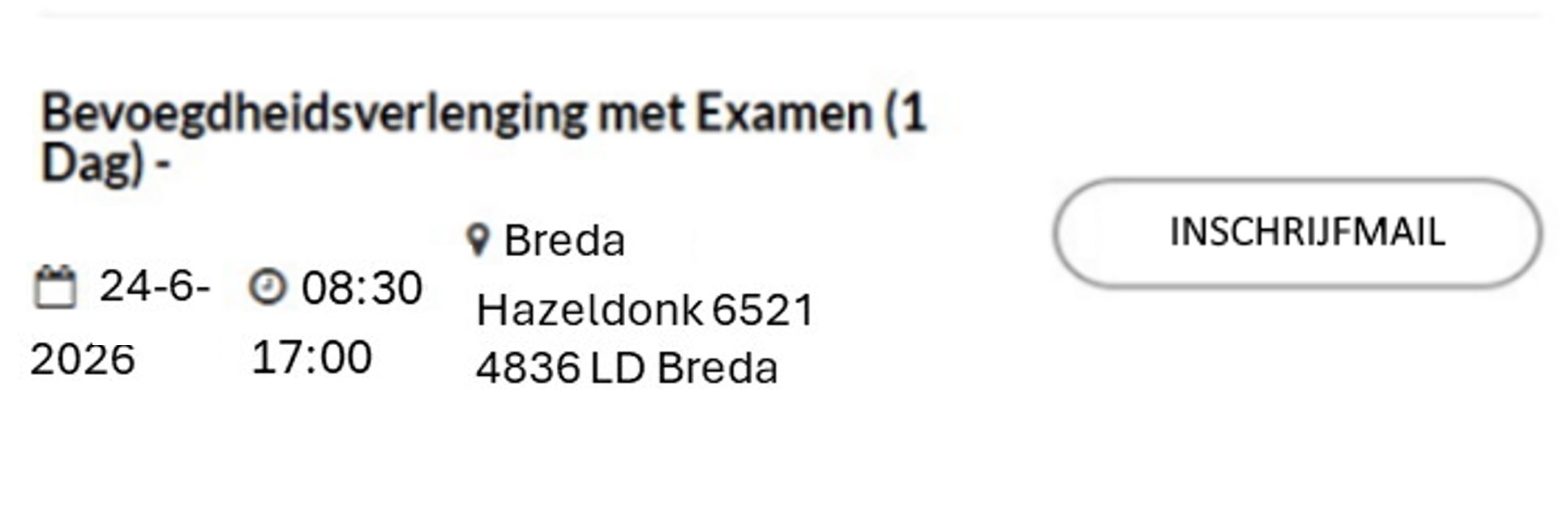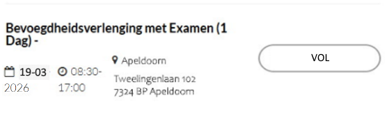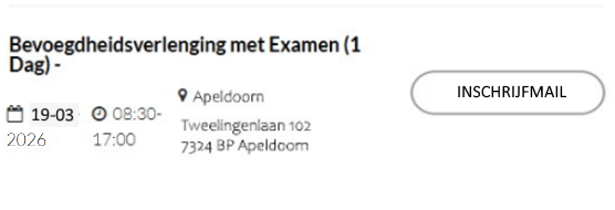 Registreren en inschrijven kan hieronder, voor de locaties Apeldoorn en Breda. Voor Eindhoven zijn momenteel geen data beschikbaar.