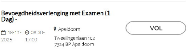 Onze VDO Academy locaties zullen zoveel mogelijk trachten aan de gewenste reserveringsdag te voldoen. Indien er te veel aanmeldingen zijn voor dezelfde dag zal de VDO Academy contact opnemen en een alternatief aanbieden.